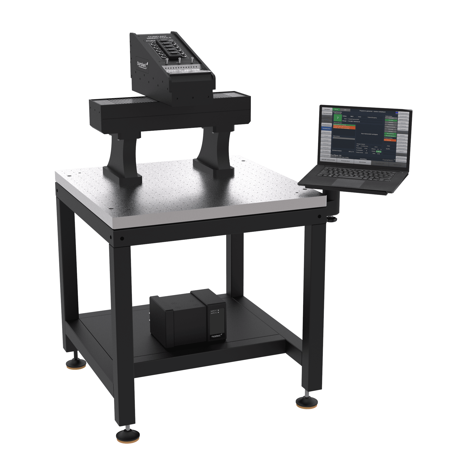 2. Portal-XT-32: This unit consists of a high-precision movement system with a travel distance of 300 mm x 200 mm. Up to three processing heads can be accommodated by the gantry. In combination with the fixtures, which can be freely positioned on the base plate, a high degree of flexibility is achieved. Various application processes can be implemented efficiently.